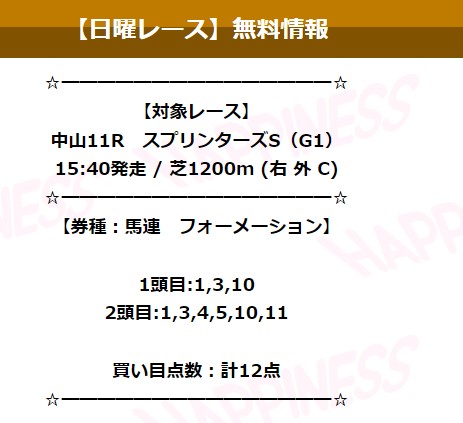 9月9日(土)ハピネスの無料予想