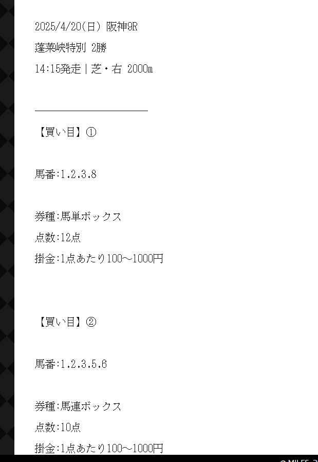 4月12日(土)13日(日)と無料予想2日連続的中