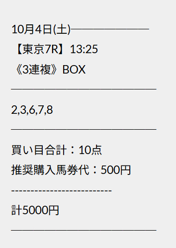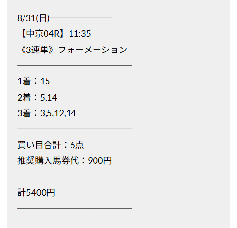 8月30日(土)31日(日)に買い目を手に入れて