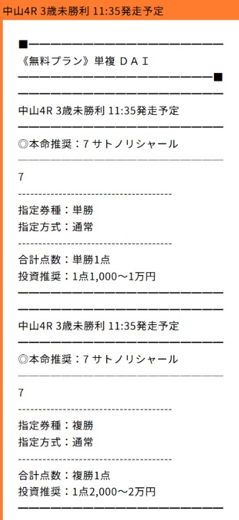 中山4Rは実は単複の無料予想も提供されていて