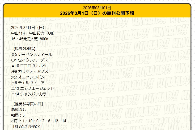無料予想でここまでの買い目を出せるサイトはかなり優秀だと思います!