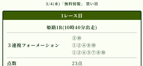 5日(木)も姫路2Rで三連複的中