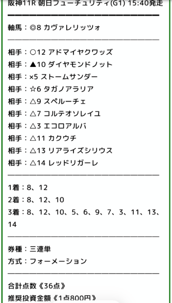 そして、見事に阪神11RのG1朝日杯FSを三連単無料予想で的中!