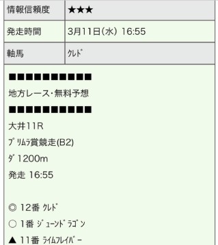 3月11日(水)の大井11R無料予想で