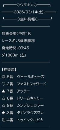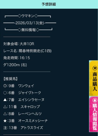 3月13日(金)の地方競馬無料予想大井10R