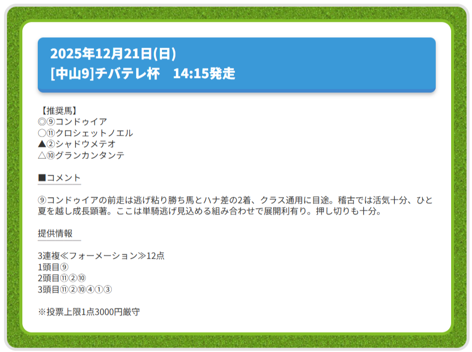 12月21日(日)の中山9Rで