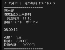 馬券代総額9900円で6万8970円獲得
