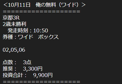 無料予想/ワイド/買い目点数3点