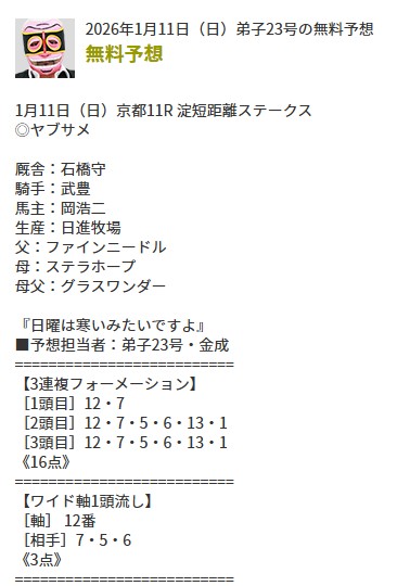 2026年も無料予想で順調に的中と貯金を殖やしています。